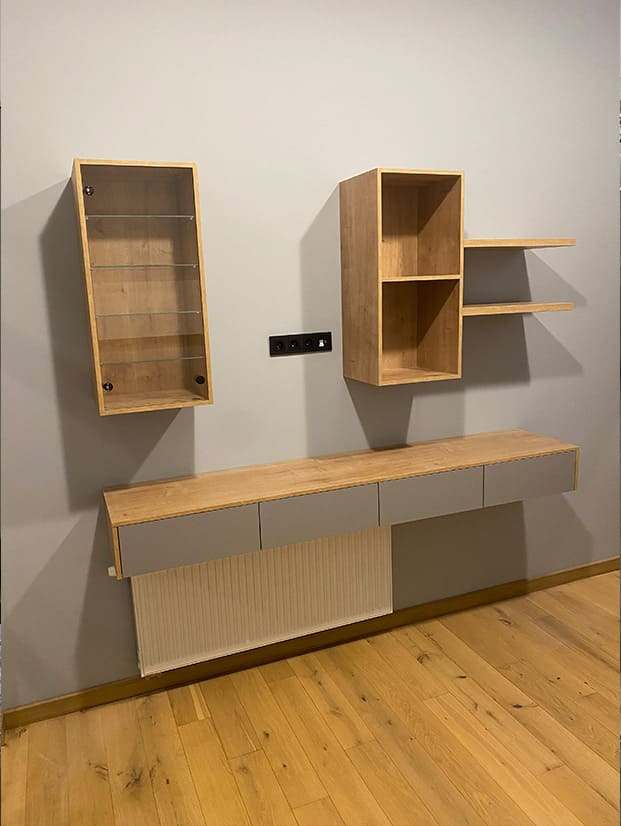 Конечно заказывать навесную тумбочку под телевизор не выгодно, дешевле заказать на Ozon.